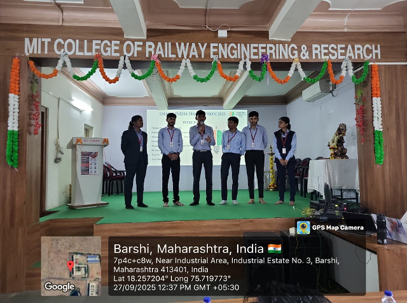 MIT College of Railway Engineering & Research, Barshi, successfully organized its Internal Hackathon 2025 on 27/09/2025.